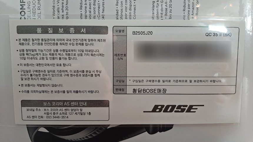 구매는 보스 청담 직영점에서 했습니다. 구매하기로 결심한 후 바로 사용해 보고 싶은 마음에 근처 매장에 전화해서 재고가 있는지 확인한 후 직접 다녀왔습니다. 가격은 정가인 429,000원이었습니다.
